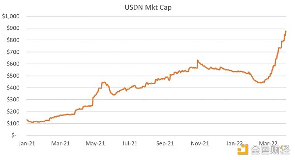 在過去的 4 周里,USDN 的市值從 4.75 億美元增長到了 8.75 億美元,增長幅度達到了 85%,而同期的 DAI 市場規模卻下降了。