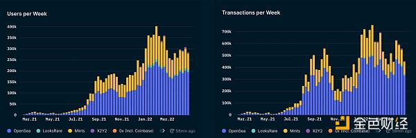 每周用戶數都高于 2021 年的任何一周,每周交易量雖然沒有那么強勁,但仍處于良好狀態,與崩潰的市場相去甚遠。