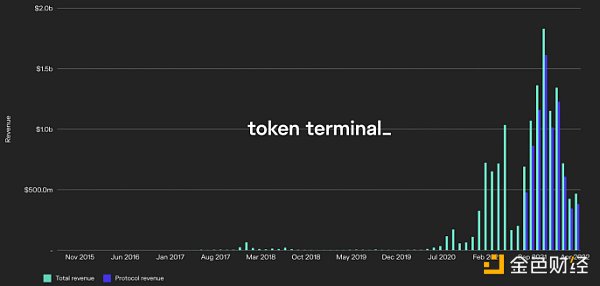 ETH 網絡收入(總收入)和燃燒費用(協議收入)-- 來源:Token Terminal