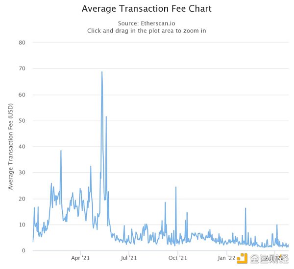 以太坊平均交易費用(美元)- 來源:Etherscan