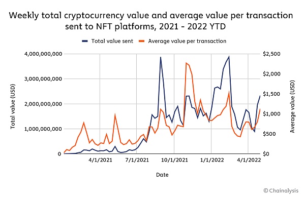 今年(截至5月1日),非同質化代幣(NFT)的收藏者已經向NFT市場發送了超過370億美元的價值,這一數字幾乎超過了2021年全年的總額。