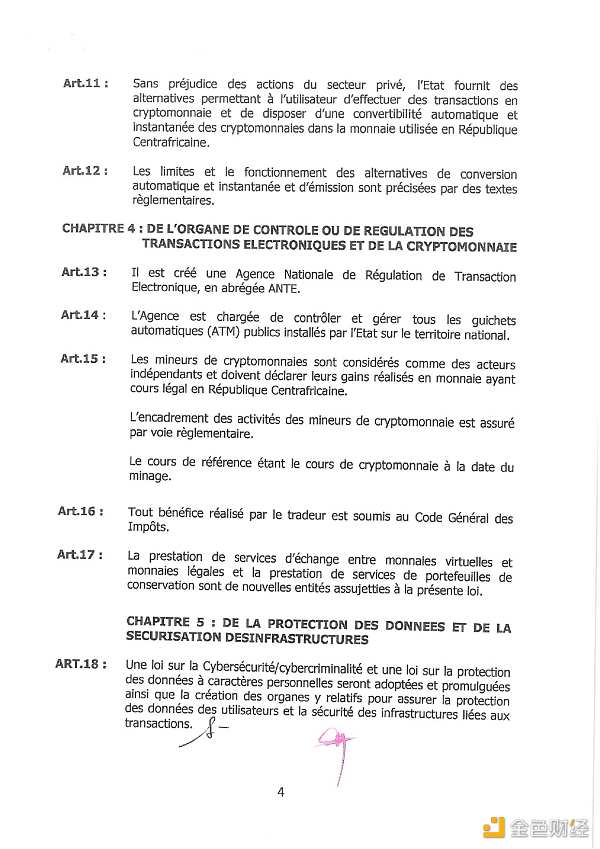 第11條:在不影響私人部門行動的情況下,國家應提供替代品允許用戶進行加密貨幣交易,并可將加密貨幣自動和即時兌換成中非共和國使用的貨幣。