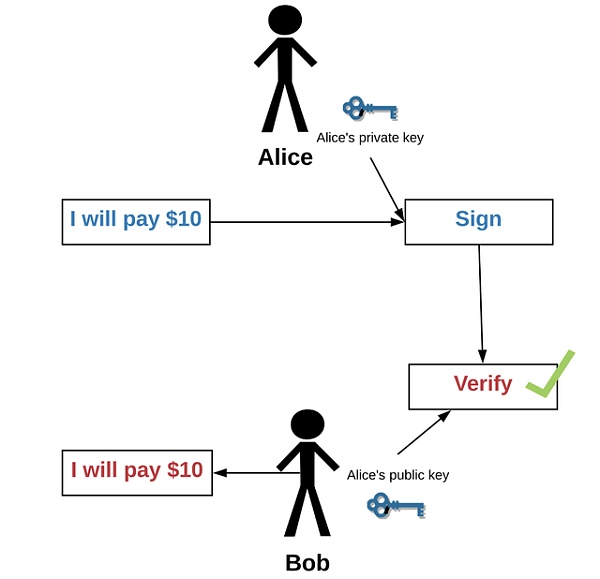 私鑰為用戶發出的每個區塊鏈交易生成一個“數字簽名”。簽名通過以下方式確保真實性: