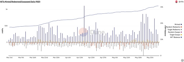需求端的增長速度很快,一天之內最高有約 1100 個 NFT 被鑄造成 ERC20 的 vToken,5月內可以收取約 $1.2 million 的費用。