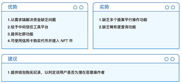 精度問題,可以通過碎片化解決。市場目前有 NFTx、Fractional 等項目。從需求端來看,也可以通過具備安全性的資金眾籌平臺解決,讓使用者在多簽的環境下可以集中資金,共同管理集資的 NFT。