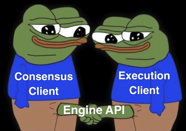 執行客戶端(又名「Eth1 客戶端」)—— 當前的 Eth 1.0 客戶端繼續處理執行。他們處理區塊,維護內存池,管理和同步狀態。PoW 部分被撕掉了。