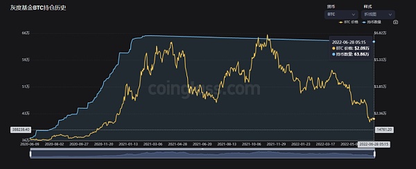 三箭資本在最近遭到了大規模的清算,不過灰度作為本次事件的主角之一同樣受到關注,因旗下的GBTC是造成三箭被清算的要素之一。三箭資本數十億美元的BTC資產被鎖定在GBTC,間接加劇了自身的流動性危機。