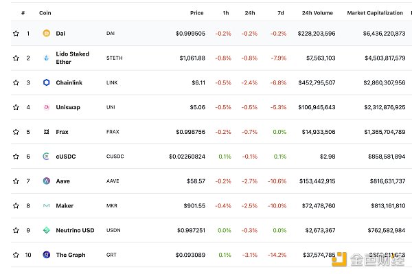 DeFi項目鎖定資產前十排名及鎖倉量 數據來源:defillama
