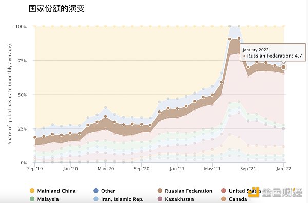 俄羅斯杜馬加密貨幣立法監管工作組成員 Andrey Lugovoy 表示,由于氣候條件、電力過剩且成本低廉,俄羅斯有可能成為世界上第一大加密貨幣挖礦國。據劍橋大學另類金融中心 (CCAF) 的數據,截至2022年1月,俄羅斯以占據比特幣全網算力4.7%的市場份額排名第五。