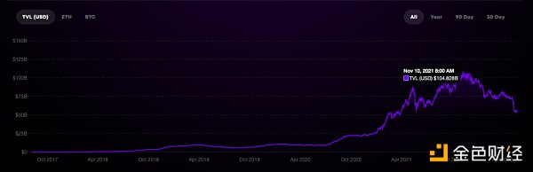很多人都曾參與到DeFi中,共同創造了2020年的DeFi之夏。在最高峰時期,DeFi的流動性數據最高峰曾破千億美金關口。這種上漲的趨勢從2020年9月一直持續到2021年下半年,受整體市場情緒影響,隨后DeFi出現了下降趨勢。