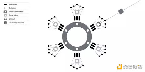 波卡的多鏈生態中,所有的鏈分為中繼鏈和平行鏈兩種。在中繼鏈的的層次上提供底層的 PoS 驗證,共享計算和共識;平行鏈運行不同的應用,并由插槽(Slot)連接到中繼鏈。而非平行鏈的其他鏈(比如 ETH 和 BTC)可以通過轉接橋(Bridges,一種特殊的平行鏈,專門負責跨鏈)與中繼鏈通信。
