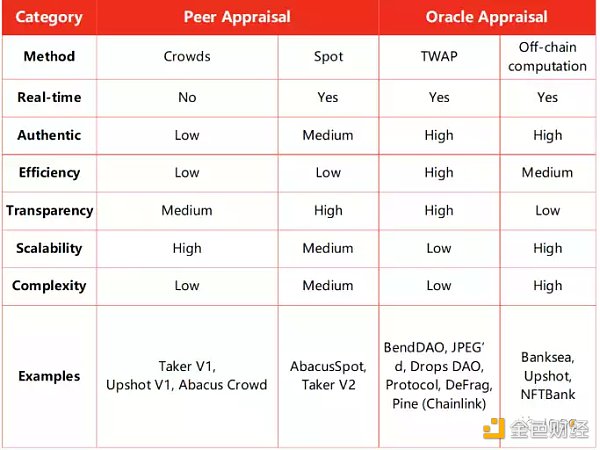 最后,我們可以將目前市面上 NFT 定價兩大范式中的四種具體解決策略通過下述幾個維度進行概括梳理: