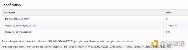 降低交易調用 calldata gas 成本,并增加一個區塊中調用 calldata(Gtxdatazero) 的總交易的限制。