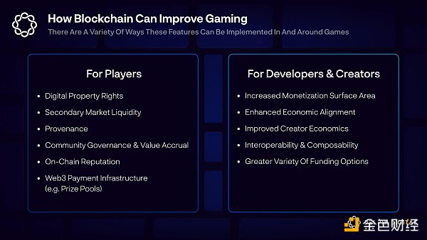 改善創作者的經濟狀況:在像 Roblox 這樣的 UGC 游戲中,創作者只保留 30% 的收入。在區塊鏈游戲中,創作者通常會保留更多他們創造的價值,并從鏈上版稅中獲益。