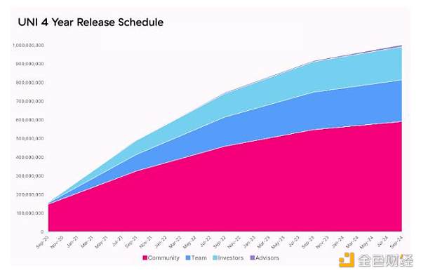 UNI代幣按照四年時間表解鎖。