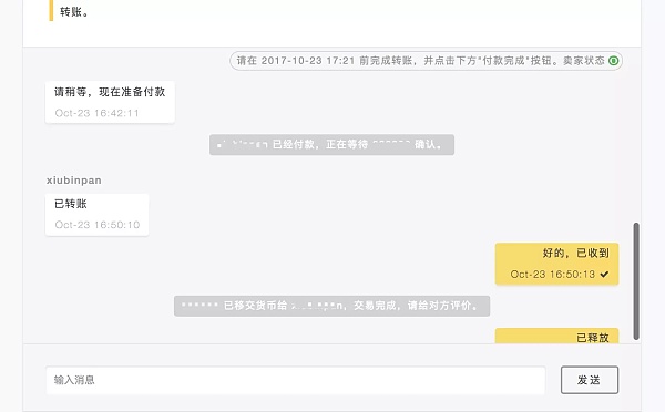 與買家溝通,等待買家付款,買家付款確認后,你需要仔細檢查款項是否已經到賬。只有在確認到賬之后才可以點擊「釋放貨幣」按鈕