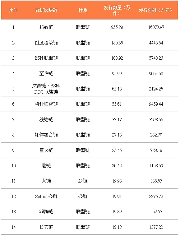 (二)螞蟻鏈以發行856.88萬件數字藏品位居榜首