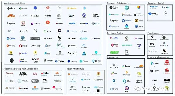 因為DCS解決方案存在于基礎設施層,所以它們的生態系統通常代表用戶需求,因為它們的用戶(消費者、公司、開發人員)可以選擇使用或構建哪個生態系統。生態系統的力量來源于1)建立在協議之上的項目和2)與之合作的現有項目。考慮到他們的合作關系的成熟度和新項目的添加速度,Filecoin擁有最強大的生態系統。在過去的18個月里,Filecoin的生態系統已經從40個項目發展到300多個項目。Filecoin擁有一批令人印象深刻的合作伙伴,其中包括:Chainlink、Polygon和Polygon Studios、The Graph、Near、ConsenSys、Brave、ENS、Flow、Hedera、ChainSafe、Ceramic、Livepeer、Audius、decrypt、MoNA和Skiff。