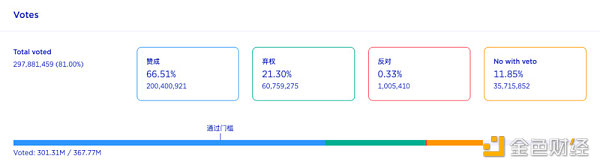 XRP/HKD-2.92%北京時間 5 月 24 日晚,由Terra 創始人 Do Kwon 提出「重建 Terra 生態計劃 2」提案(Prop 1623)經過社區投票正式通過(通過率超過早先設置的 50% 門檻)。當前投票數據顯示,共有 81% LUNA 持有者對 Prop 1623 進行了投票,其中 66.51%(2 億)支持,21.3% 棄權,0.33% 反對。根據投票規則,總票數約為 3.67 億。根據投票規則,總票數約為 3.67 億,50% 為通過門檻,目前 2 億支持已經超 50%,意味著該投票已獲得通過。