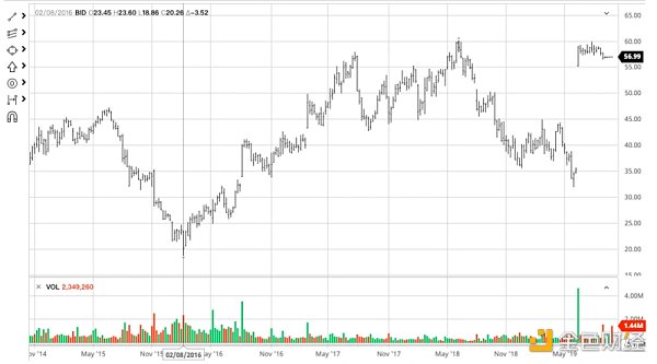 上圖反映的是知名藝術品拍賣行「蘇富比」(Sotheby)的股價歷史走勢情況。如圖表所示,2016 年春天是蘇富比發展歷史上的一個關鍵轉折點,在此之前其股價曾連跌了近半年之久,但隨后卻一掃頹勢,實現了近兩年的長線上揚。