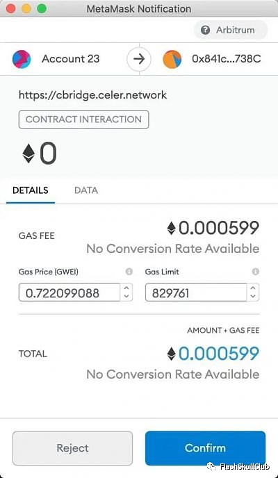 使用cBridge完成跨鏈的具體操作如下:(以從Arbitrum跨鏈至BSC為例)