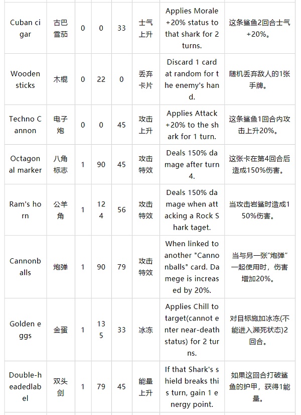 不同種類和等級的鯊魚,上述屬性的數據是不同的。