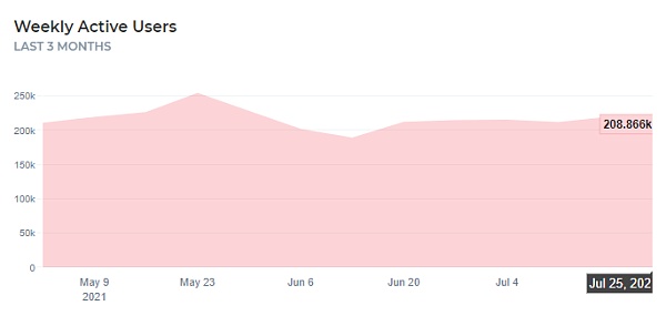 Chai的周活躍用戶數,信息來源:https://www.chaiscan.com/