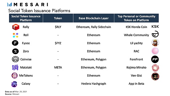 平臺Token主要是為了便于創作者發行并管理好Token化社區。最具代表性的社會平臺Token是Rally。Rally平臺可以提供創建社交Token的主要工具,游戲直播網站Twitch在這個平臺上創建自己的社交Token,主要用于獎勵在Twitch的創作者和成員。該平臺鼓勵非原始加密的傳統媒體平臺通過發行Token連接主流受眾,未來能否期待平臺Token項目方與Facebook、Twitter的合作呢?