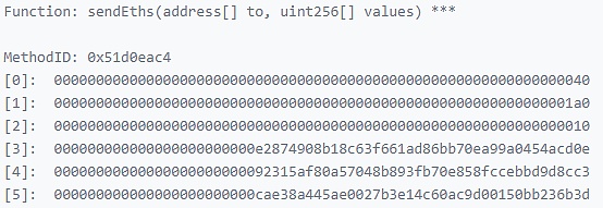 3. 也就是說,我們可以推測這個列表的數據是成對循環的,依次向每個地址發送 ETH。到這里似乎道理挺簡單的。