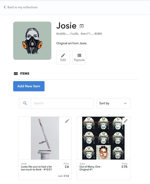 而 Add New Item 按鈕可以幫你創建一個新的 NFT。