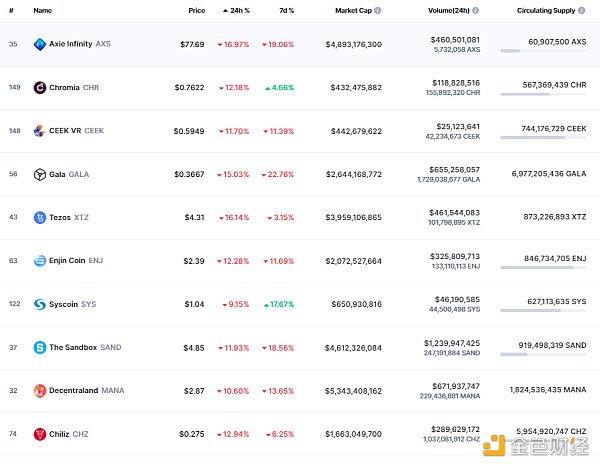 NFT總市值、市值排名前十項目 數據來源:coinmarketcap