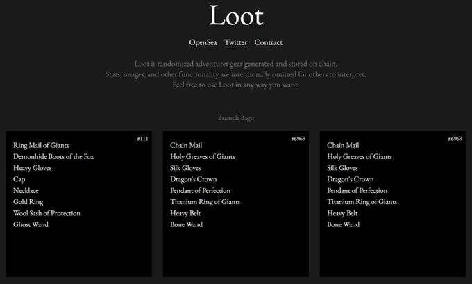 DOM 開發的 NFT 文字游戲項目 Loot 就是自下而上創新的一個典型例子 - 圍繞 Loot 構建的社區項目的和創造力令人無比震驚。
