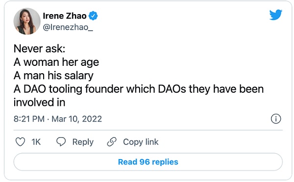 現在還沒有那么多合法的DAO,大多數DAO只是為了引人注目,并希望成為長期項目。當一個新的DAO工具推出時,你通常會看到同樣的三到五個DAO標志作為客戶呈現在登陸頁面上。我也認為這主要是一個近期的擔憂,隨著DAO的啟動、管理和擴展變得越來越容易,這個問題最終會得到解決。