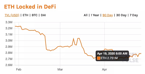 從上面的數據表現來看,312 暴跌事件對 ETH 鎖倉量的瞬時負面影響要小于前面的 bZx 攻擊事件;但是,隨著之后 ETH 價格持續走低,該事件對 DeFi 生態 ETH 鎖倉量的影響越來越大:3 月 12 日后一周內,ETH 鎖倉量減少了 12.2% 。