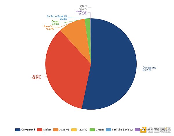 DeFi借貸平臺借款占比,金色財經制圖, 數據來源:Debank