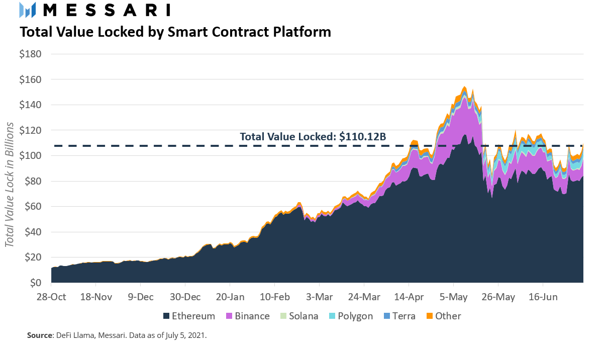 2021 年第二季度延續了第一季度的勢頭。過去三個月的 TVL 流量證明以太坊的派對仍然是主陣地,但它可能不是唯一值得參加的派對。