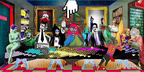 比如AsyncArt有一副畫最初的晚餐(First Supper),包含了22個圖層,可以分開售賣,每一個持有人都可以對自己擁有的圖層進行二次創作。這就意味著,這幅畫的顏色、細節、審美將隨著歷史的演進而不斷改變,將承載著每一代人、每一個歷史階段的世界觀。如果有一天,后人在鏈上翻閱這樣一副飽經蒼桑的歷史畫卷,回顧作品曾經記載過的滄海桑田,那是多么令人震撼且感動呀!正是區塊鏈才讓這樣的歷史可以永不磨滅。