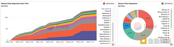 隨后,社區對審查的熱議推動中心化的質押服務商站隊。最近 Coinbasde CEO Brian Armstrong 就表示寧愿退出質押業務也不愿接受政府部門的審查。市場份額占比最高的以太坊質押運營商 Lido Finance 也表明「Lido 的使命是讓質押變得簡單且安全,并保持以太坊(和其他 PoS 網絡)去中心化和抗審查。」這兩家運營商控制 38% 的已質押以太坊。其他以太坊驗證節點運營商包括 Kraken、Binance、Stakeed.us、Bitcoin Suisse 等暫未表態。