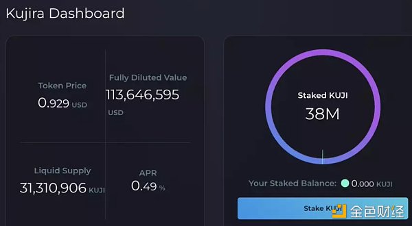 質押 KUJI,賺取 Kujira 的部分收入,現在它的年利率是 0.49%。產生的掉期費用是 KUJI 質押者的真實收入,隨著采用率的增加和更多的 dApp 在 Kujira 上推出,APR 應該會增加。