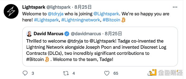 8 月 25 日,Lightspark 官方 Twitter 第二次發表了推文,內容是歡迎閃電網絡的聯合作者 Tadge Dryja 加入他們的團隊,這使得這只新創立的團隊變得更加耀眼。