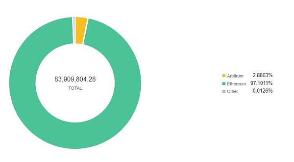 大多數 TVL 都集中在以太坊上,但這也反映了 Badger DAO 所關注的資產:將比特幣包裹到其他區塊鏈中。大部分是在以太坊主網上獲得的。