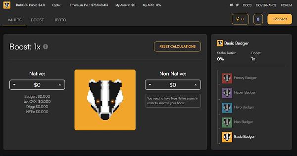 在您的錢包中持有 Badger 可以增加您在其他 Sett Vaults 的 APY,這是 Badger Boost 系統的一部分。