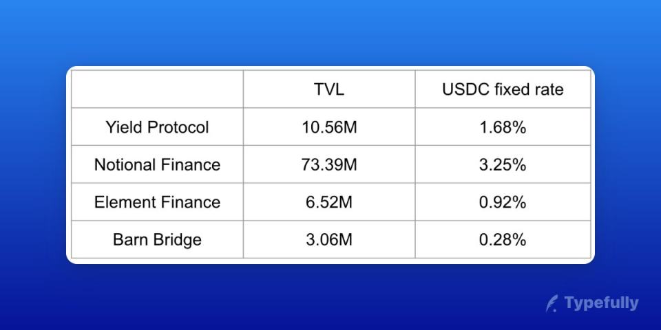 Notional Finance 的表現優于其他協議,其總鎖倉量最高為 7339 萬,USDC 的年化收益率達到了 3.25%。