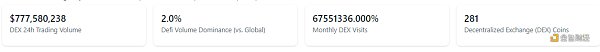 2、過去24小時去中心化交易所的交易量7.76億美元