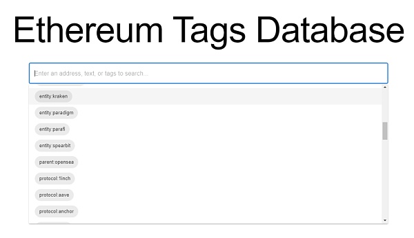 以Ethereum Tags Database為例,這是白帽黑客@samczsun開發的一個以太坊地址標簽庫。通過這個工具,你不會再遇到想要查某個機構的錢包地址卻不知怎么搜索的窘境。輸入標簽,你會被鏈接到相關地址。