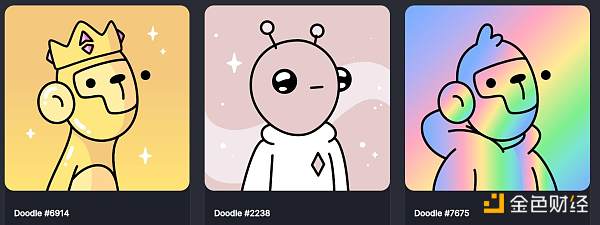 Doodles 的愉悅。與許多頂級收藏形成鮮明對比的是,這些 NFT 的設計看起來毫無攻擊性,看起來讓人心情很愉悅。尤其對于女性群體來說,在傳播性上有天然的優勢。