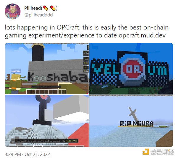 在 OPCraft 中發生了很多事情。該項目很容易成為迄今為止最好的鏈游實驗/體驗 opcraft.mud.dev。