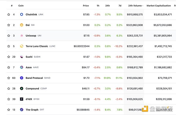 過去24小時去中心化交易所的交易量 數據來源:coingecko