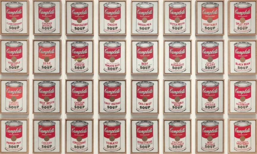 《金寶湯罐頭》,安迪·沃霍爾于 1962 年創作這是一組整齊排列的 32 個罐頭,就像超市貨架上的陳列,每一個看起來近乎一樣,區別在于每個罐頭標注的口味不同。這幅看起來略顯「單調無聊」的《金寶湯罐頭》卻在 20 世紀后半葉掀起了一場藝術風暴,它的作者安迪沃霍爾被譽為波普藝術教皇,并憑借一系列近似風格的作品躋身世界頂級藝術殿堂,成為比肩畢加索、梵高的傳奇藝術家。