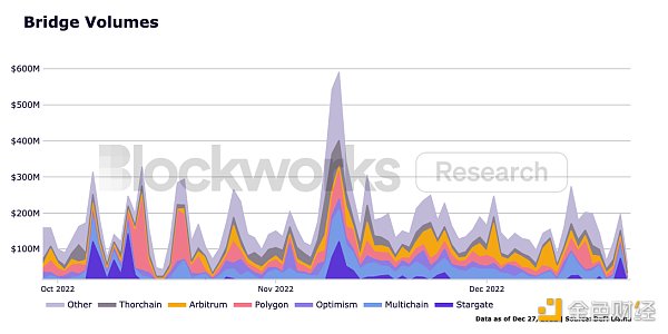 Bridges在今年下半年的活動大幅減少,主要是因為鏈上活動全面下降。另一個促成因素可能是全年發生的大量黑客攻擊,總額達到至少21億美元。